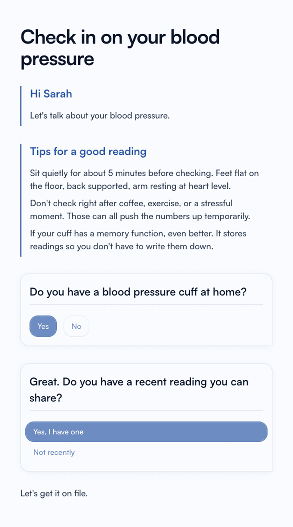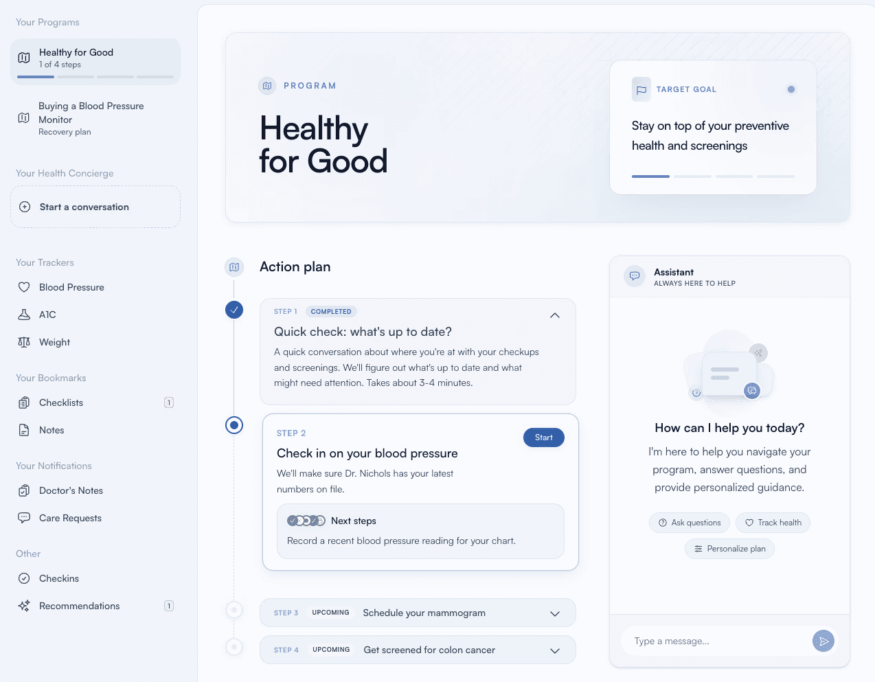 White-labeled to your brand and grounded in your clinical content. Each patient gets a guide that knows their history, remembers every interaction, and adapts as their situation changes.