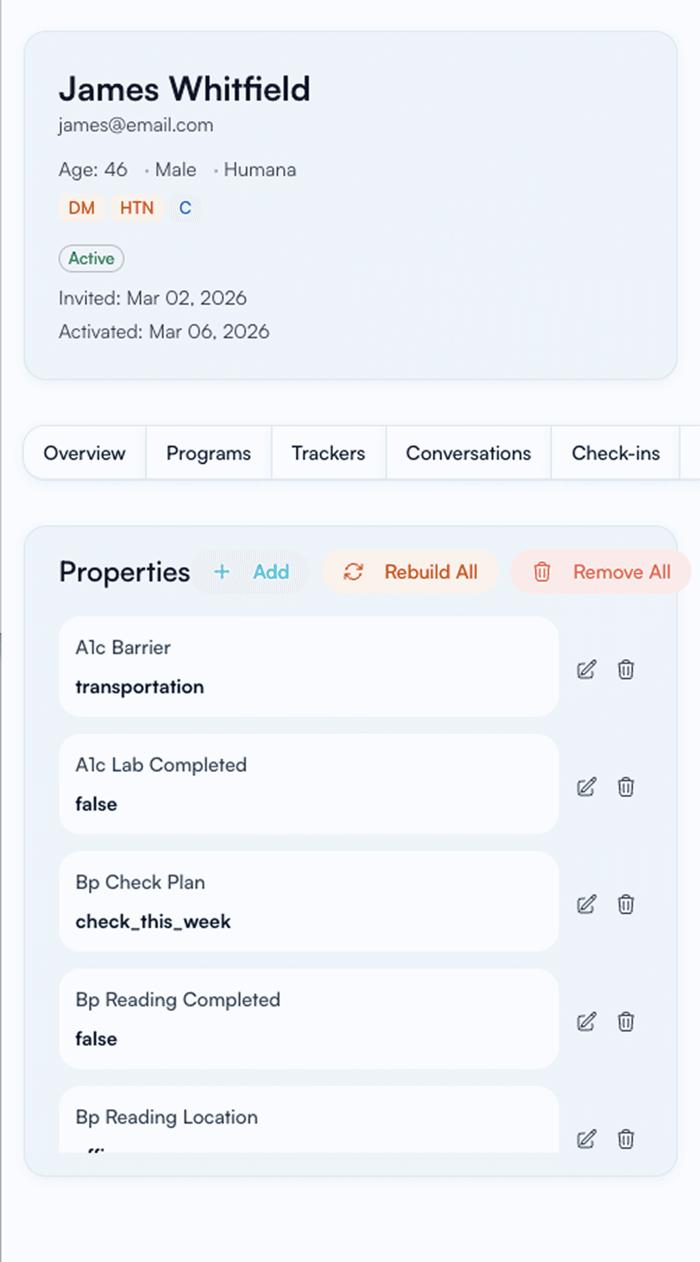Every patient interaction becomes structured data. Not page views, not session time. The kind that powers value-based care and actually proves outcomes.